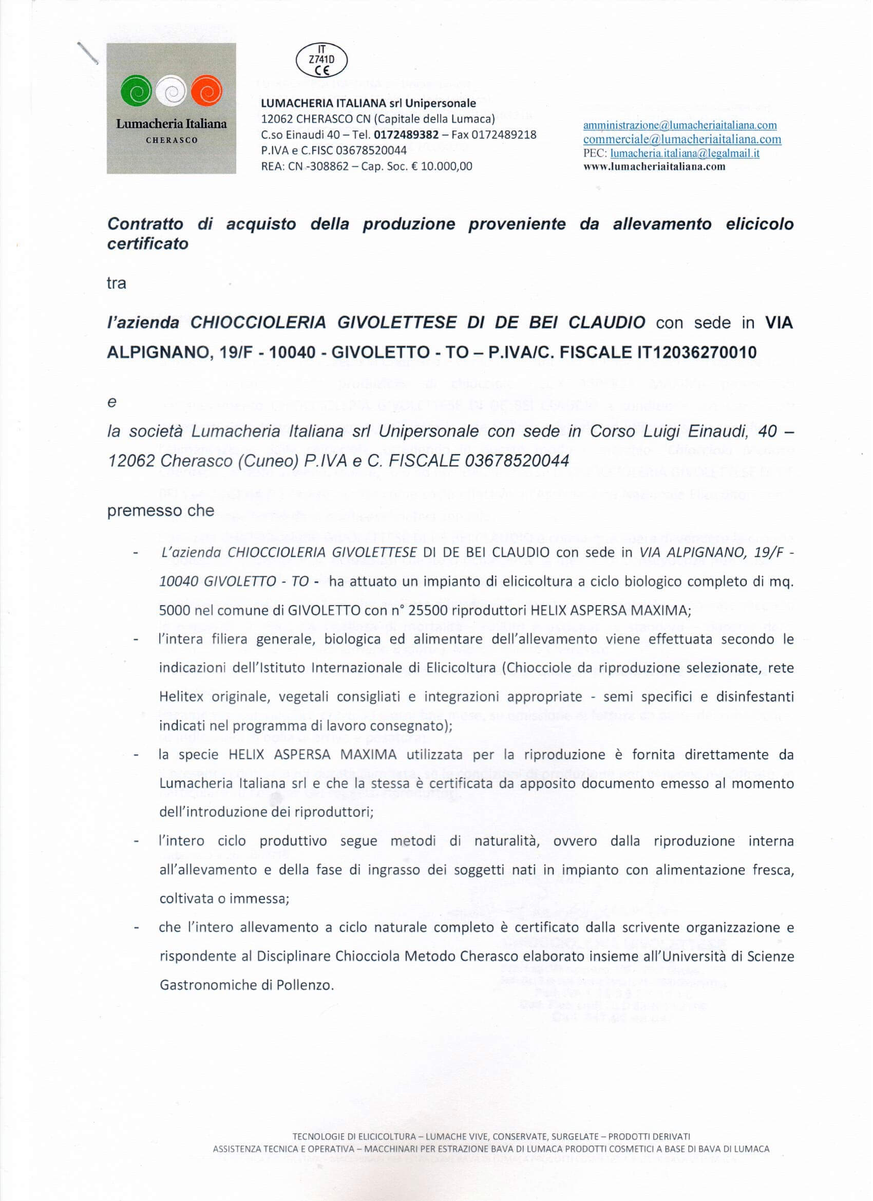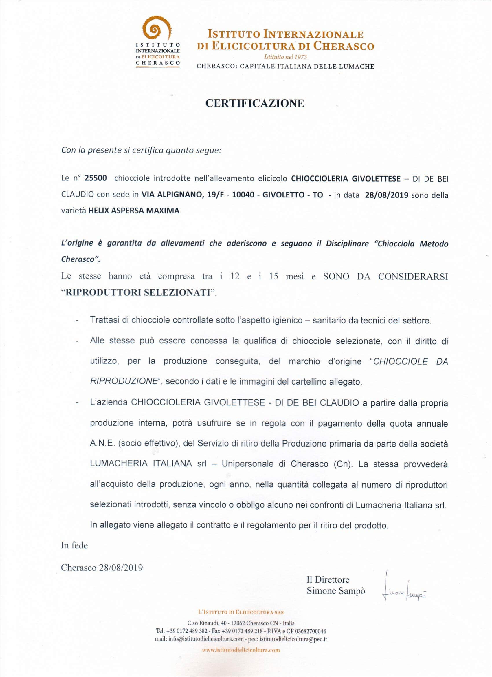 certificazione istituto elicicoltura cherasco